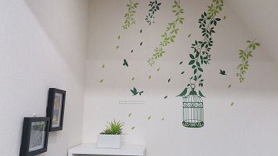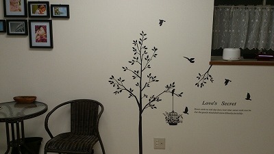 部屋が少し殺風景だったのでシールを貼ってみました。 どうでしょうか? 夫婦そろってセンスがないからね・・・(^_^.) まき